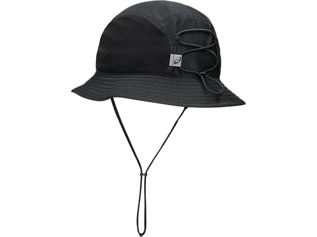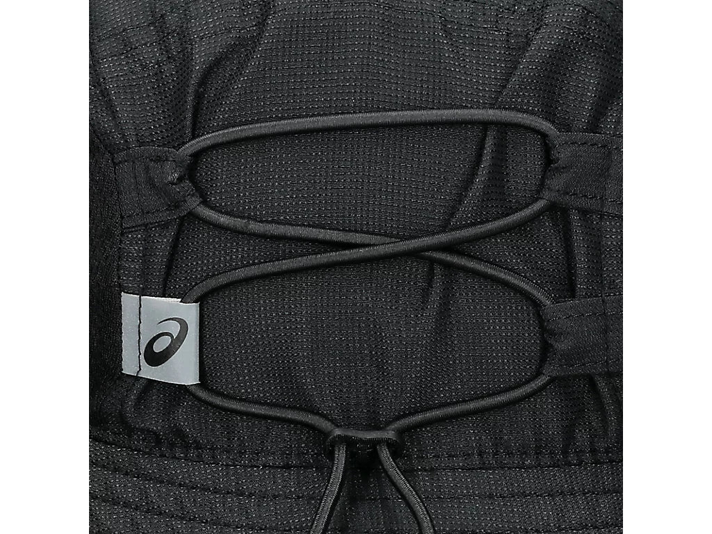 It's also adjustable and packable, with an adjustable chin cord for support and bungee cord in the back for a customized fit. It's also designed with a premium embroidered ASICS® spiral logo.
