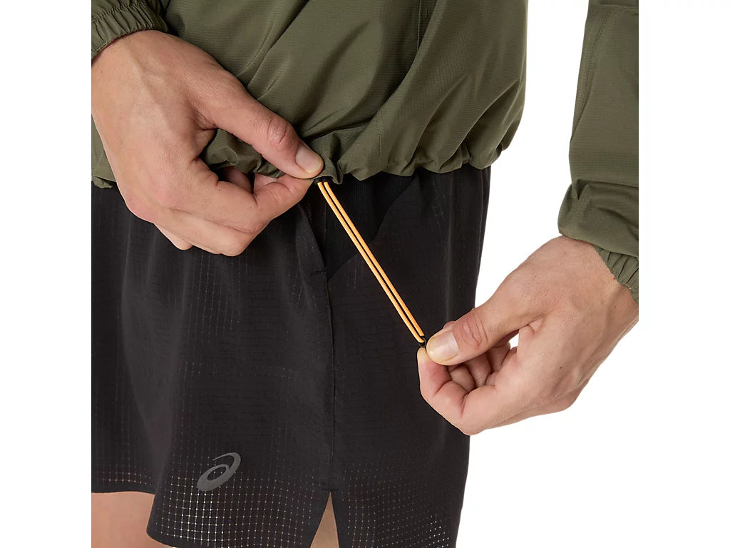 It's also designed with a high neck and thumb holes to help protect against the elements, and a back head hood adjuster for a custom fit. Additionally, the chest pocket can be used for storing running essentials and for packing the jacket into.