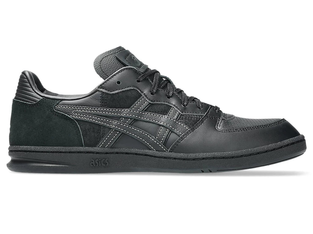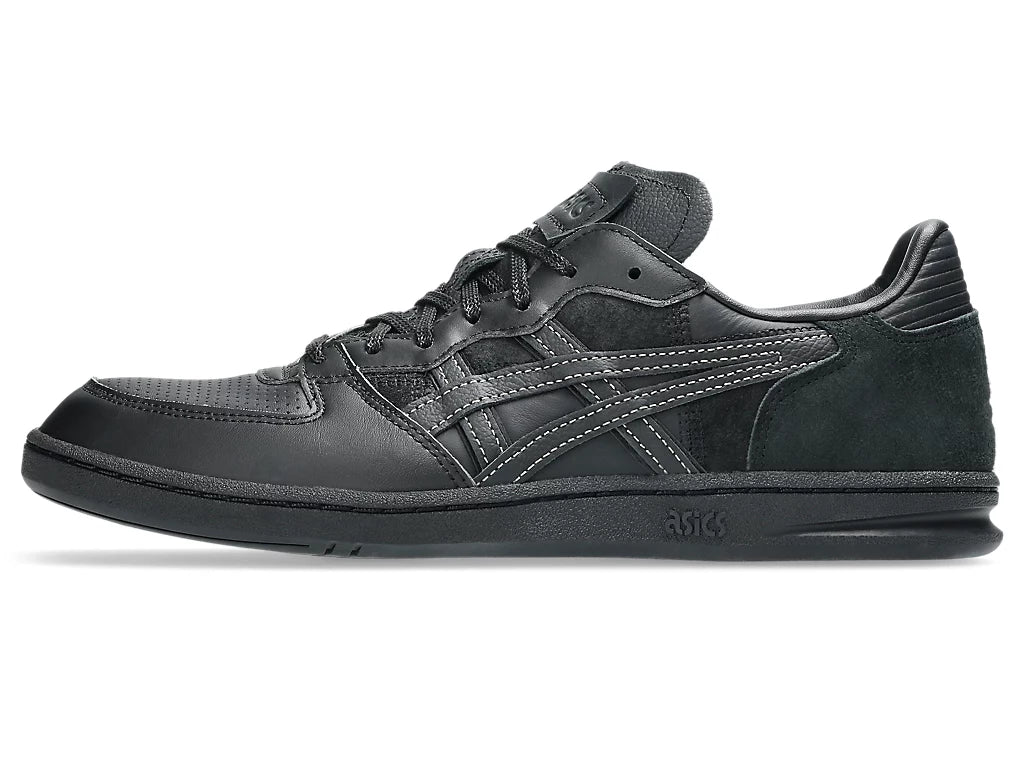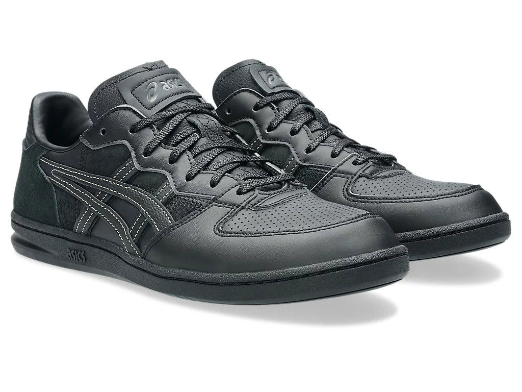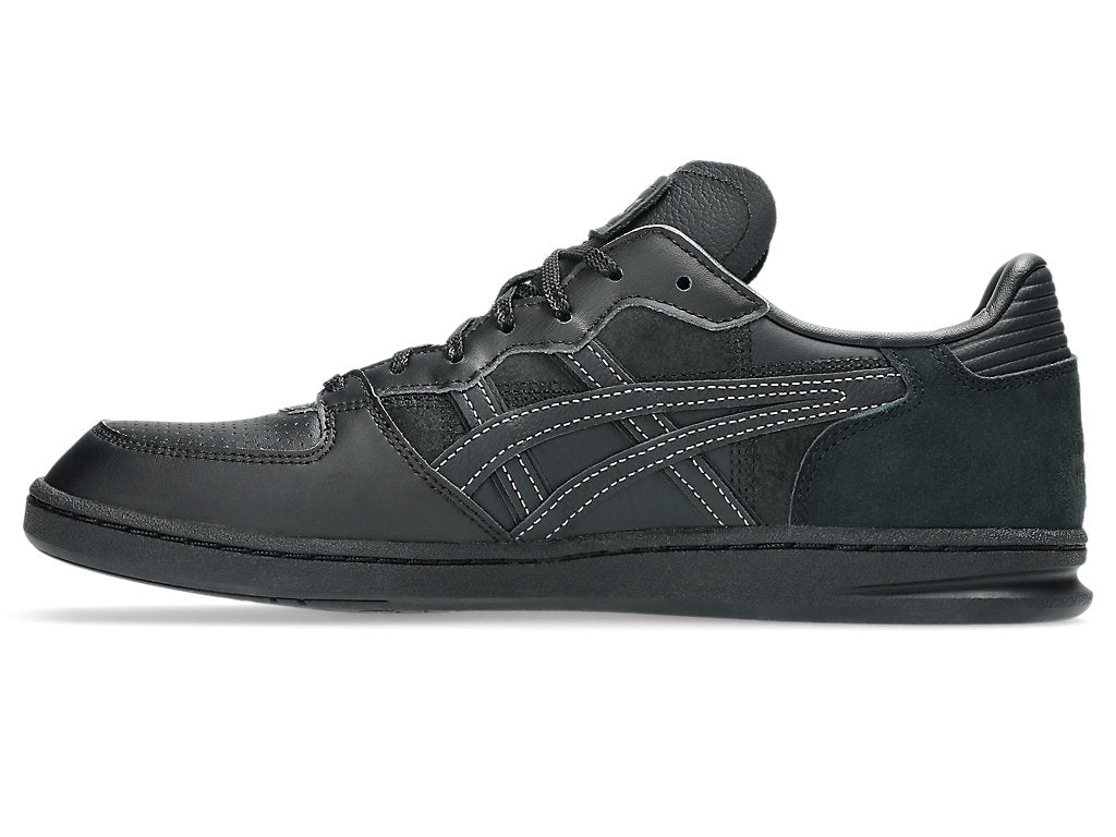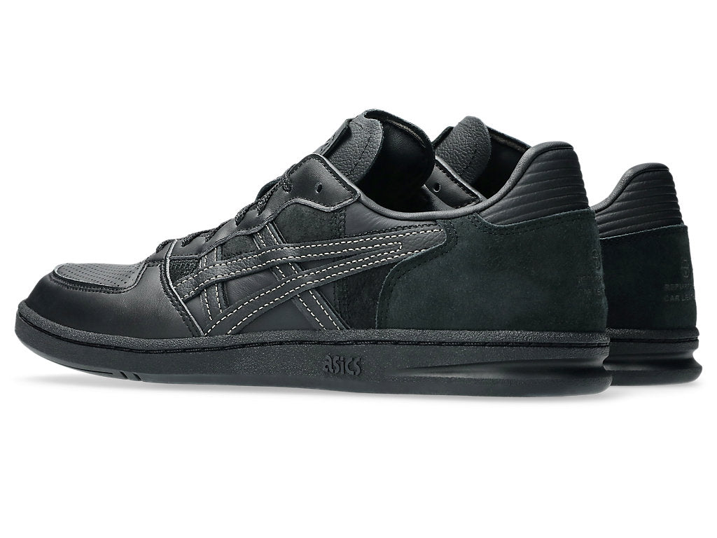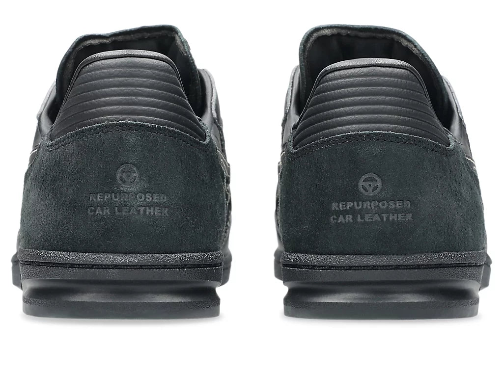 ASICS SportStyle announces the second collaboration with Toyoda Gosei. Featuring the SKYHAND™ OG sneaker, this collaboration explores the topic of becoming more sustainable by reusing Toyoda Gosei’s leftover car leather material that was used for their steering wheels. ASICS and Toyoda Gosei are both committed to becoming more sustainable brands. Therefore, the design teams found a way to repurpose the discarded content from Toyoda Gosei’s steering wheel manufacturing process as a unique design element for the SKYHAND™ OG sneaker. Designed with simplicity and everyday wearability in mind, the SKYHAND™ OG sneaker features a primarily tonal black color palette. Various leathers with suede, perforated, and smooth textures create a monochromatic patchwork effect throughout the upper. Additionally, a prominent cross-stitching connects the quarter-panel and heel as a nod to the seams that are prevalent on the auto manufacturer’s steering wheel designs.