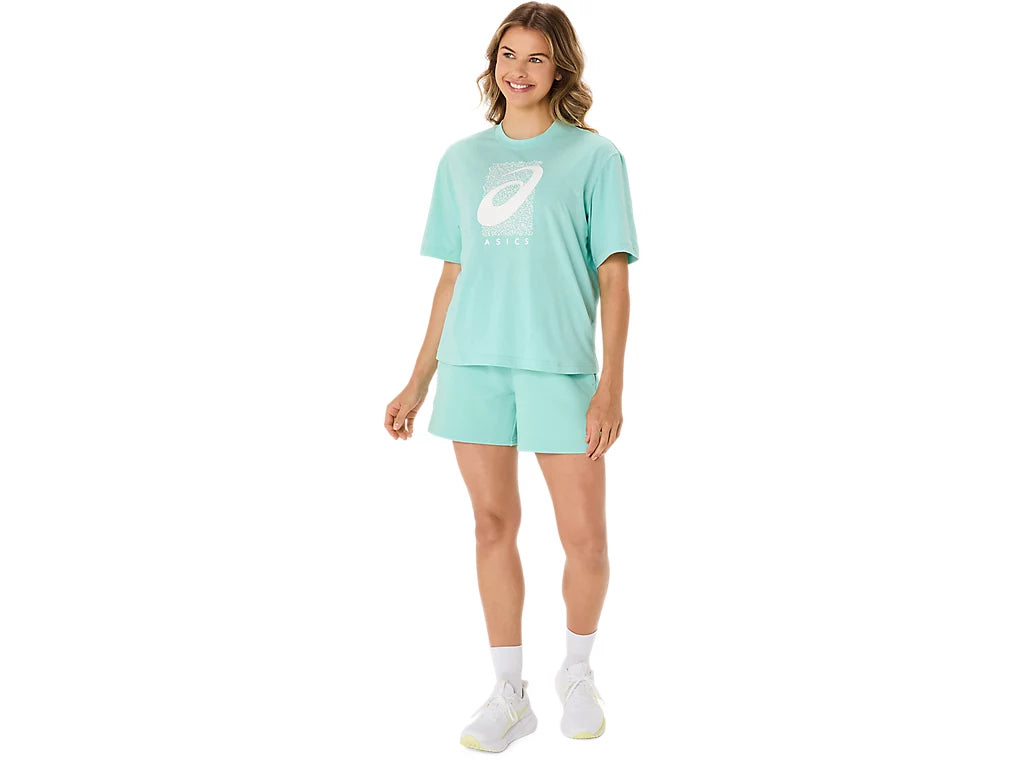 The top is also complimented with a seasonal ASICS® Spiral graphic, a cropped length, relaxed fit design, and side slits for ease of movement.
